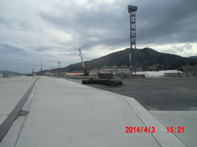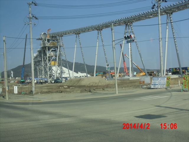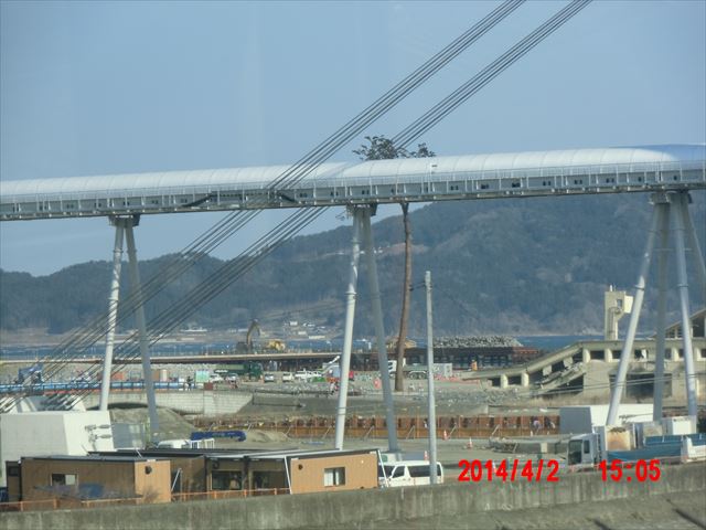 右上は気仙沼の港の風景です。 下は陸前高田の工事風景です。14mのかさ上げ工事というだけあって、大規模な構築物が稼働していて、 かの有名な、「奇跡の一本松」も陰に隠れてしまっています。(右下の写真) |