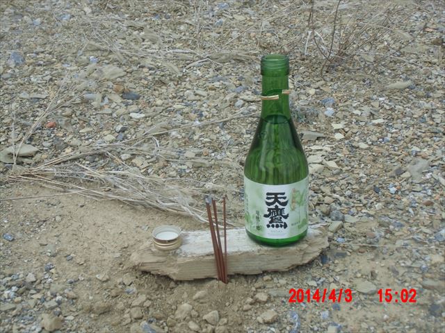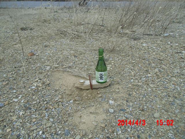 跡地の真ん中あたりで、お線香をあげ、お酒を供えてきました。