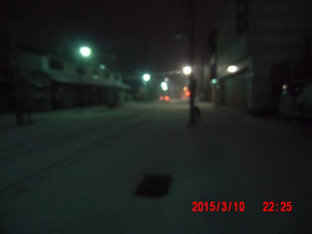 なじみの食堂に寄って小腹を見たし、帰路に着くとすごい吹雪です。 容赦なく目の中にまで雪が吹き付けてくるのでまともに前が見えません。 夜も遅く人気もないので、街の中であっても、新雪に足を取られて遭難しそうでした。 |