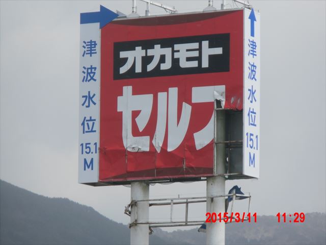 この辺一帯を高さ15メートルを超える大波が襲ったそうです。 道路わきの看板にその表示がありました。 陸前高田のこの辺りは14メートルかさ上げをするために、 山をけづって巨大なベルトコンベアで土砂を運ぶ大規模な工事が進行しています。 |