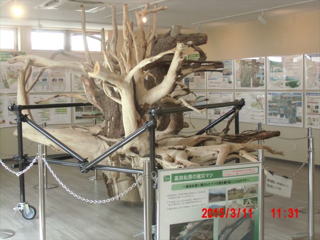 高田松原の松の根元が飾ってありました。 ちなみに3年前に来た時はこうでした。