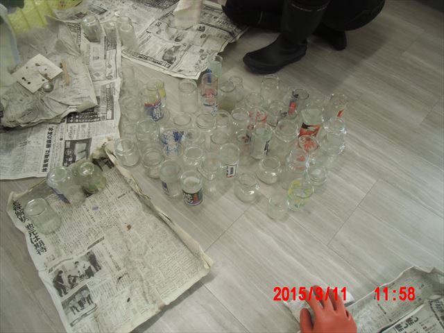 午前中の作業は、去年キャンドル用に使ったグラス類のスス落としです。 割れたりするものもあって、地味な割には気を使う作業でした。 スス落としが終わったところでお昼です。 |
