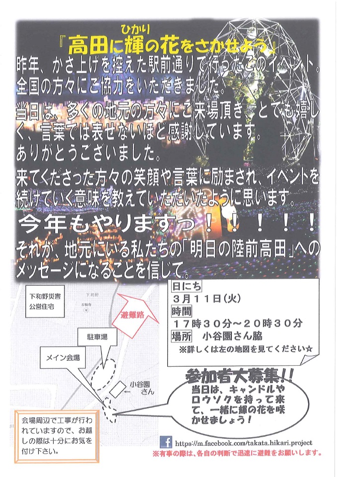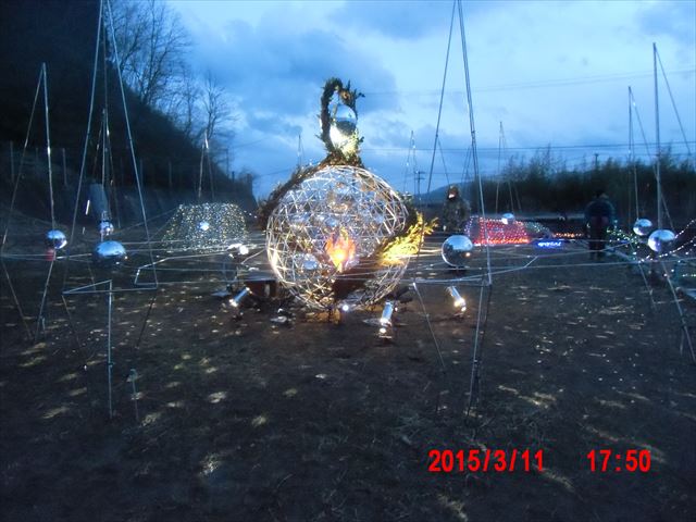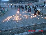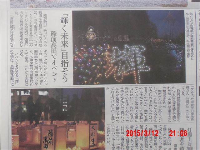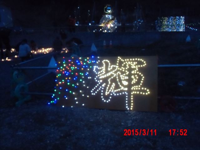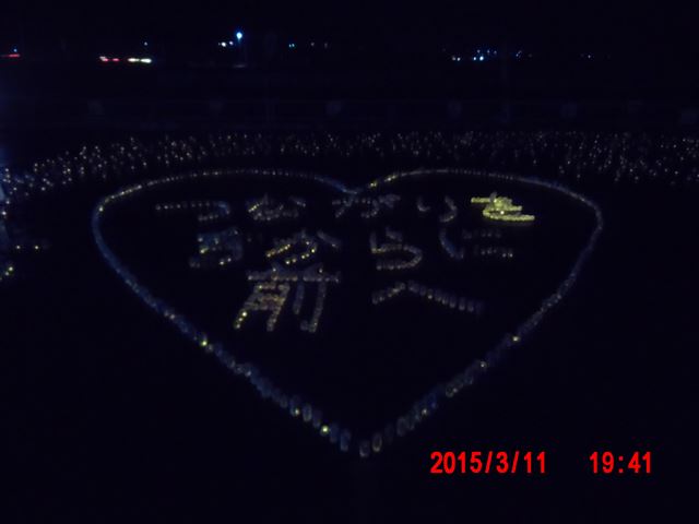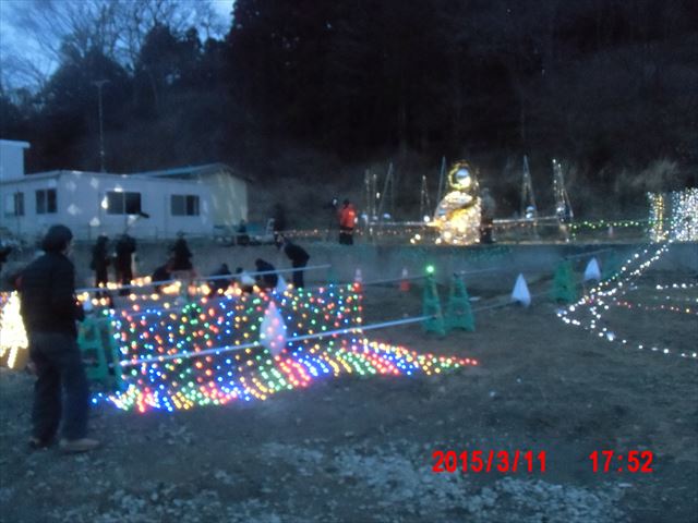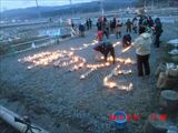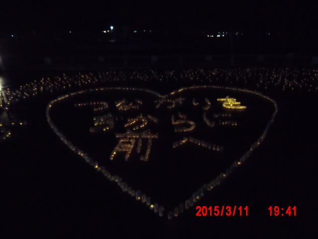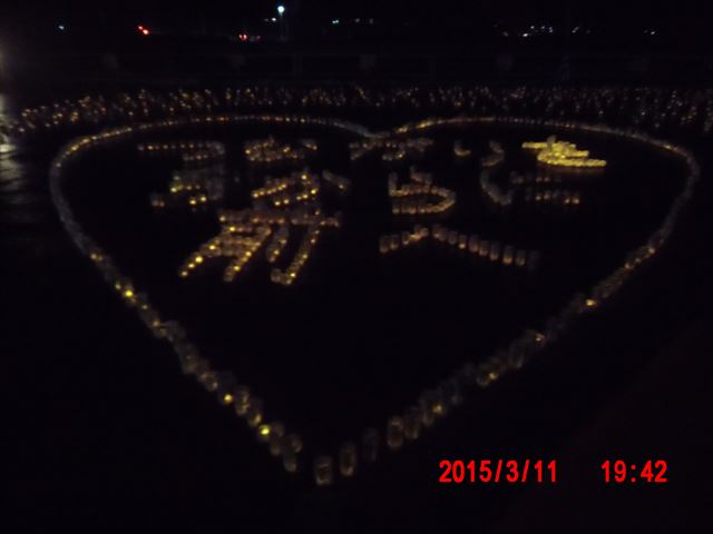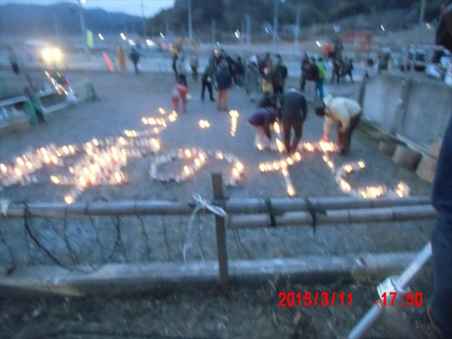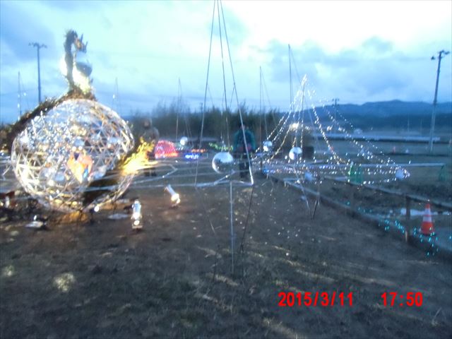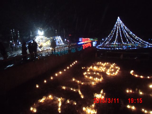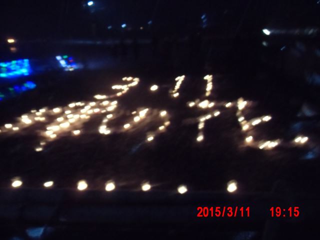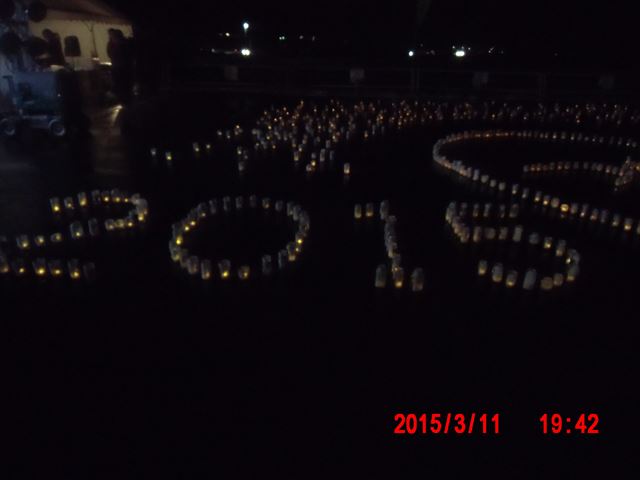 「菊池畳店」とあるのは、昨晩お世話になった家で、 この家の息子さんが震災で犠牲になった消防団員の方で、 昨夜の光のイベントのきっかけになった方です。 |