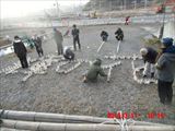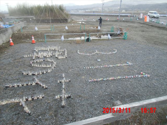 昼前に陸前高田に着きました。 キャンドルイベントの会場は2か所に分かれ、ボランティアのメンバーも2つのグループに分かれて、 準備に取り掛かることになりました。ここは元、道の駅があったところです。 |