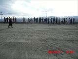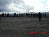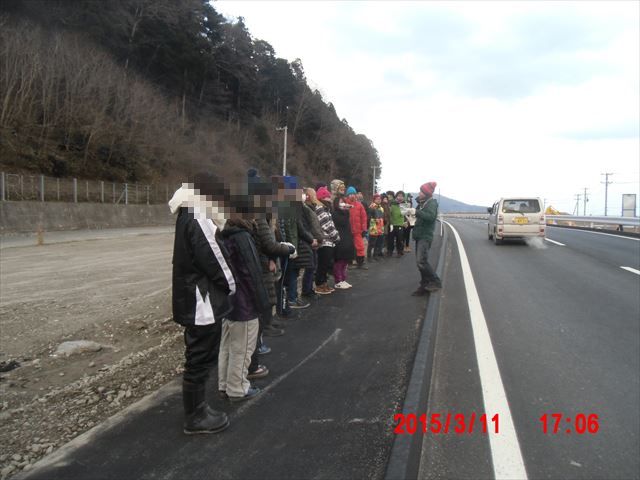 そうこうしているうちに被災した時間が来ました。 みな海に向かって整列し、黙祷です。 |