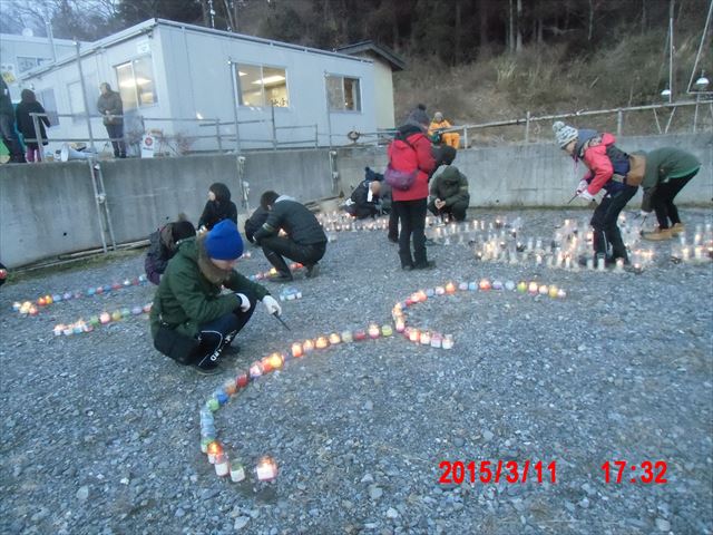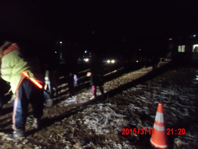 ろうそく点けに没頭して、本来の役割を失念してしまいました。 担当は、会場からこんな距離での、道路のコーナーでの案内係です。 ずっと立っているだけの仕事で、雪と風はますます激しくなり体は芯から冷え切って過酷です。 一緒に担当した新潟から来た学生ボランティアは、 「岩手の寒さをなめていた・・・」とボソッとつぶやいていました。 これまで震災以来、4年近く足を運んでいますが、今回ほどきつい作業はありませんでした。 普段のボランティアでは絶対に夜は外で作業しないから・・・ |
