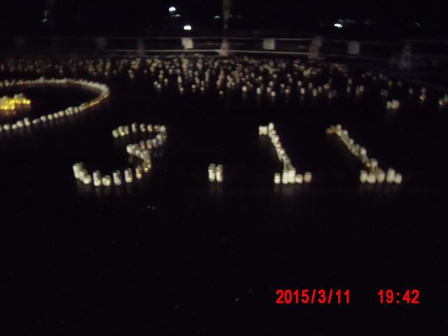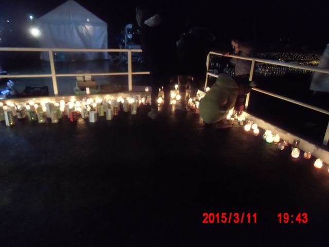 夕方、キャンドルに点灯の前にもう一度、海に向かって黙とうです。 |