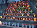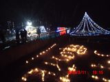 日暮れが進むとともにキャンドルやイルミネーションが際立ってきました。 でも、吹き消されて、また点けての連続です。 |