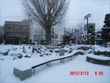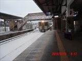花巻駅も雪の中です。 この日は、平泉あたりが雪国との境でした。 午後4時ごろ、無事自治医大駅に到着しました。 |