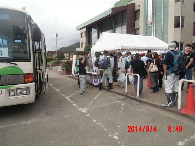 そこで用紙に名前を記入し、リーダーを決め(ドコモの携帯を持っている人優先-電波の関係です)、バスに乗り込んで活動先に向かいます。