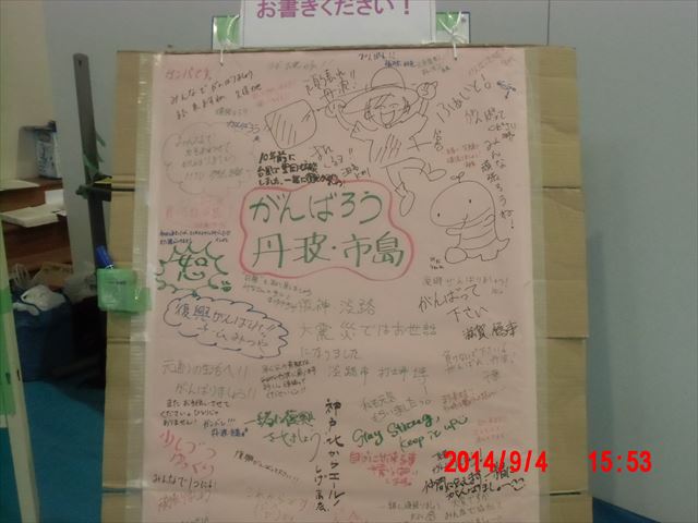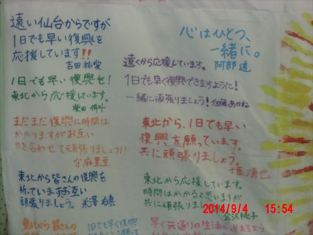 ボランティアセンター内の掲示版には、東北からの寄せ書きもありました。