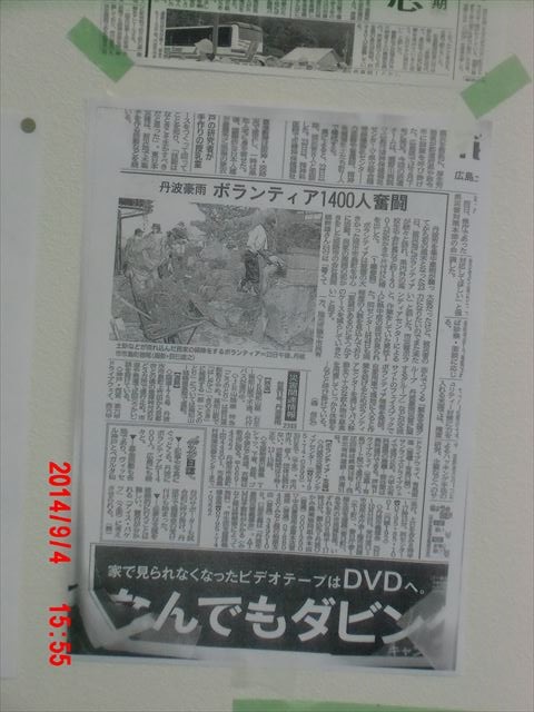宿舎で知り合った大分から来たボランティアの方の車に同乗して、隣の福知山市の入浴施設に行ってきました。活動後、希望者には無料入浴券が支給されます。
