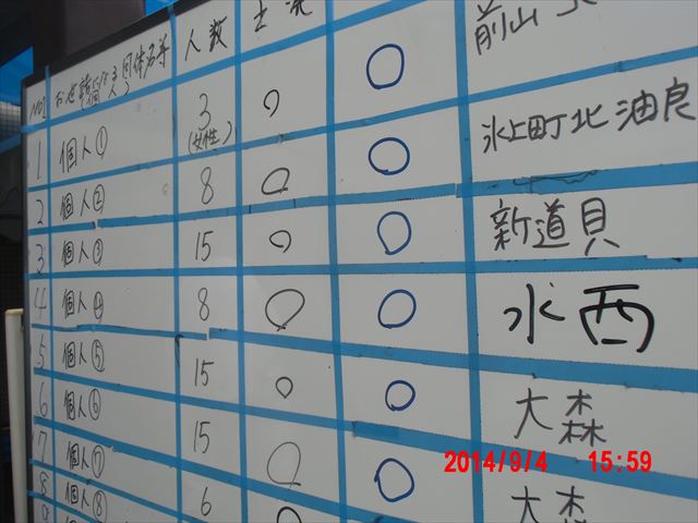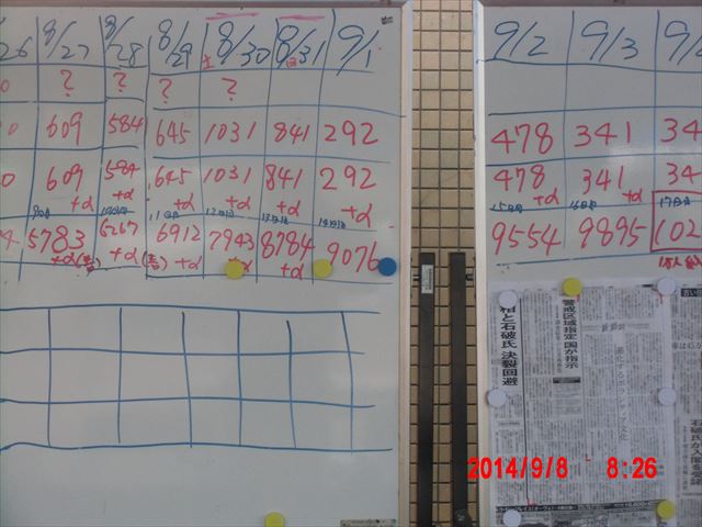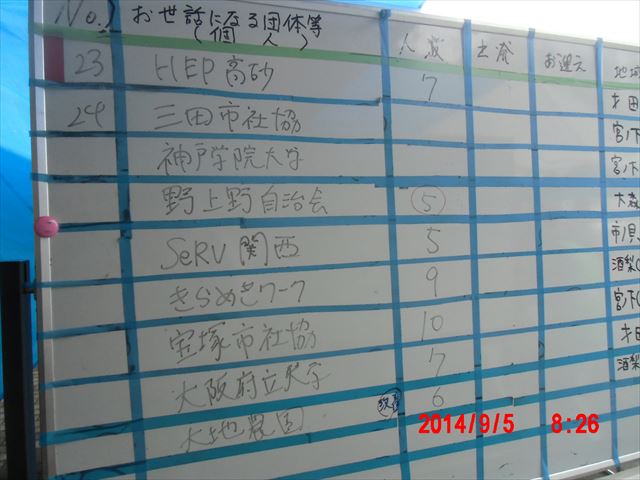 その影響もあって、今日の作業は中止になるだろうと判断したボランティアの団体のキャンセルが相次ぎました。ホワイトボードに横線のあるのがこの日のキャンセルです。