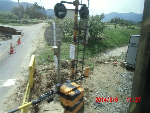 途中の道路に崖崩れの跡があります。現在も丹波市市島地区は至るところ迂回路になっています。