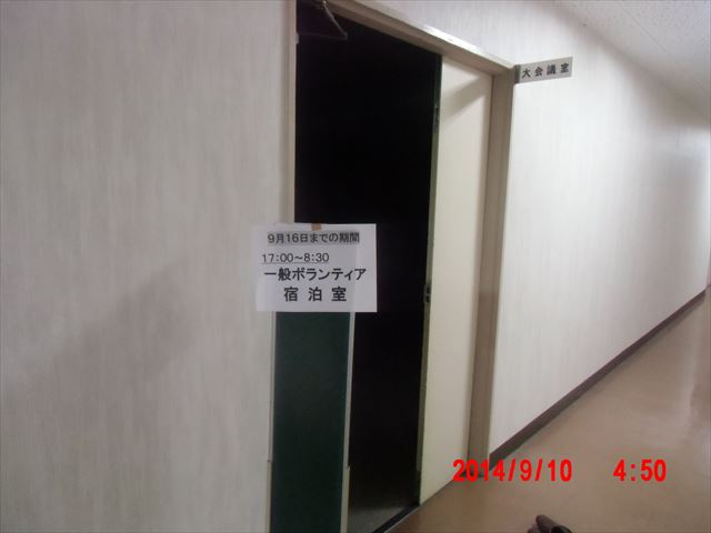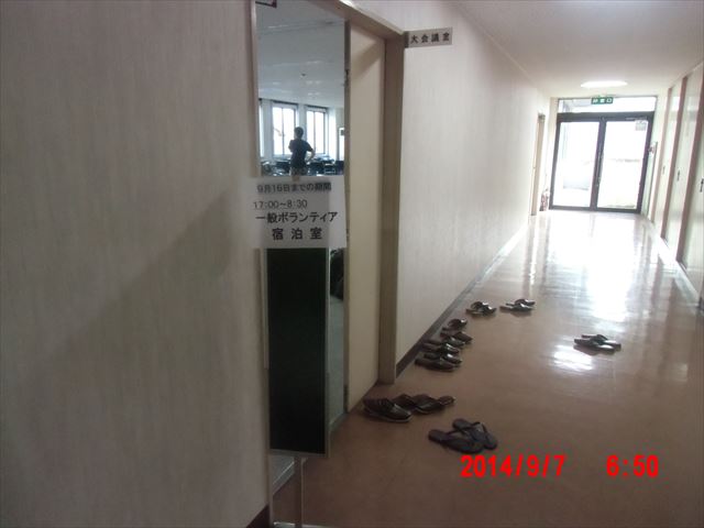 前日からボランティアの宿舎が、ライフビアからボランティアセンターの2階の会議室に移動になりました。