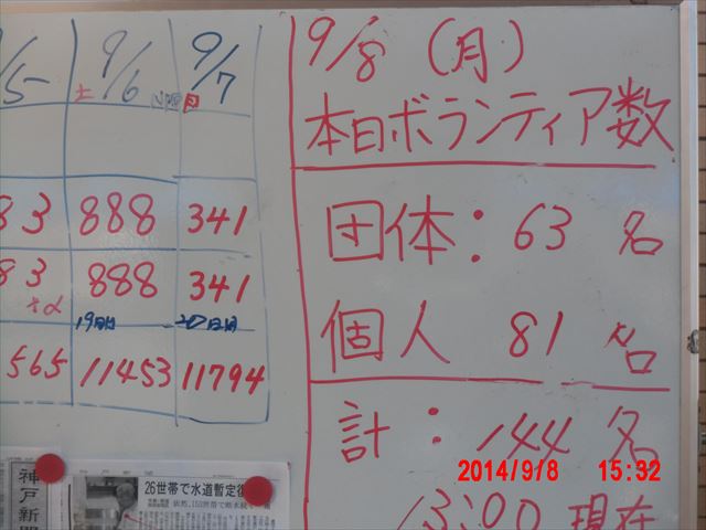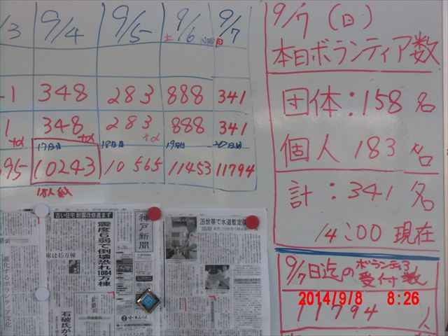 この日までのボランティアの集計です。