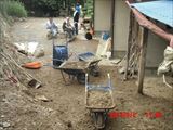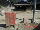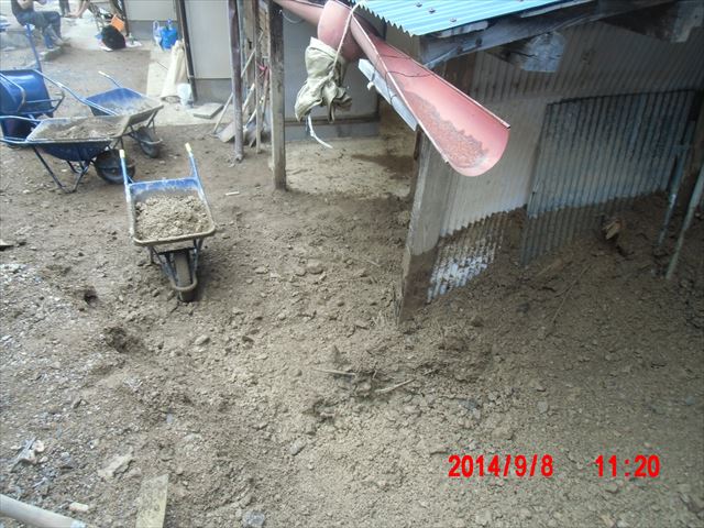この日はかなり被害の大きかった地区の、重機の入れない場所での土砂の掻き出しです。30代の元気のいい若手2人と、60代の4人のチームでした。