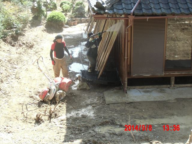 今回の作業先は個人家庭宅でしたので、写真撮影は控えました。午前中は、縁の下に入ってこびりついた泥の掻き出しです。