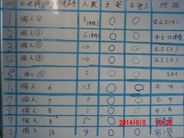 スタッフが行先別に人数を募り、集まった順に、行先別の要請人数のグループに分かれます。
