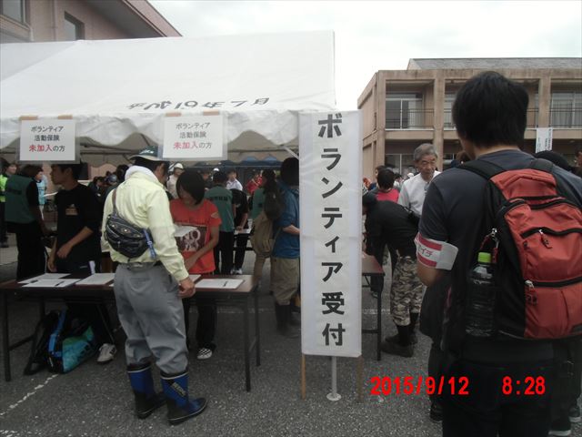 ボランティア保険に加入していない方は隣サイドの机で住所などの記入があります。