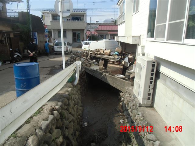 この辺高低差があり、奥の家並みはすべて1階部分が浸水していました。