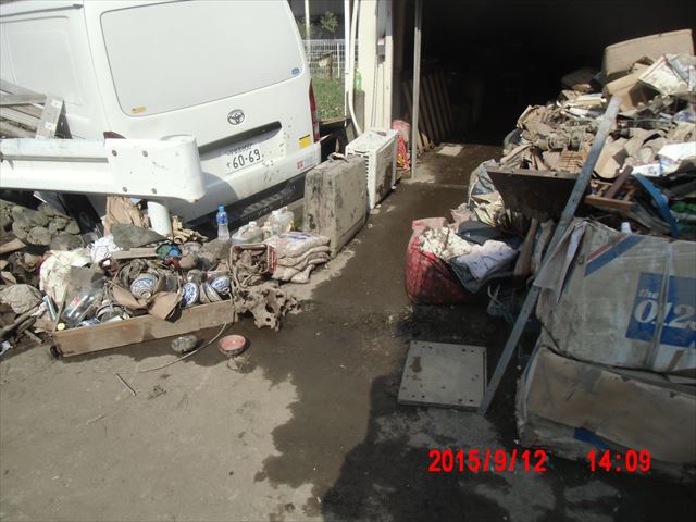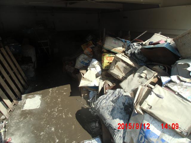 作業場所は、写真の右手奥の地下室。地下の倉庫からすべてゴミとなってしまった収蔵物を掻き出すことです。