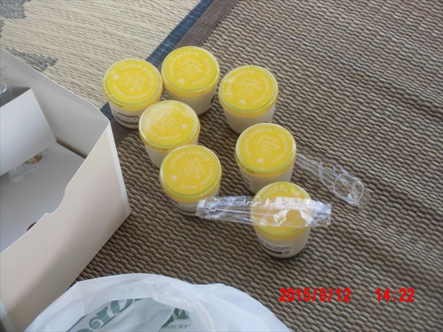 泥水を掻き出し終わって休憩、ここでプリンの差し入れがありました。