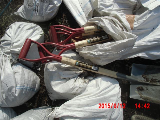 スコップは、岡山県倉敷市から、土嚢袋は新潟県小千谷市からのものでした。