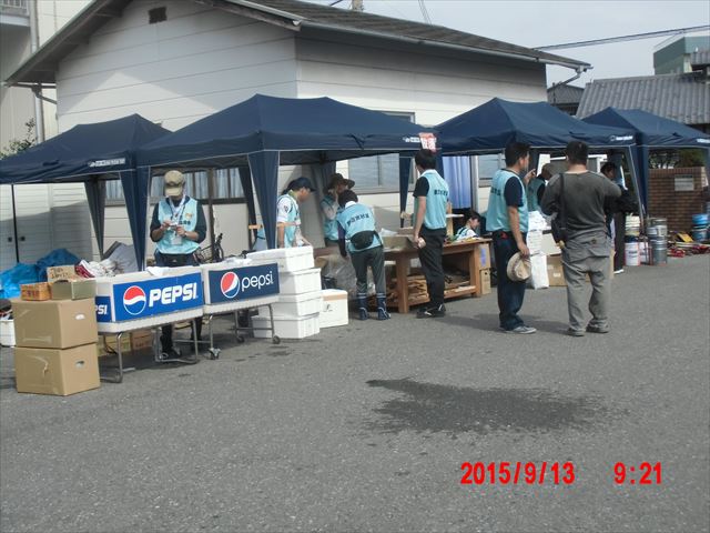 昼食風景です。駐車場にゴザを敷いてくださったり、カップ麺や何種類もの漬物を差し入れしてくださったりと、他の現場とはかなり恵まれていました。
