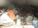写真の正面に見えるのが掻き出したゴミです。順に地下室の入り口に向かって撮影しました。一番右の写真の右奥が地下室の入り口です。