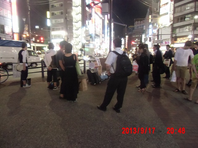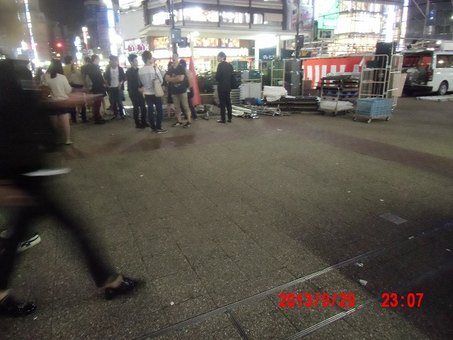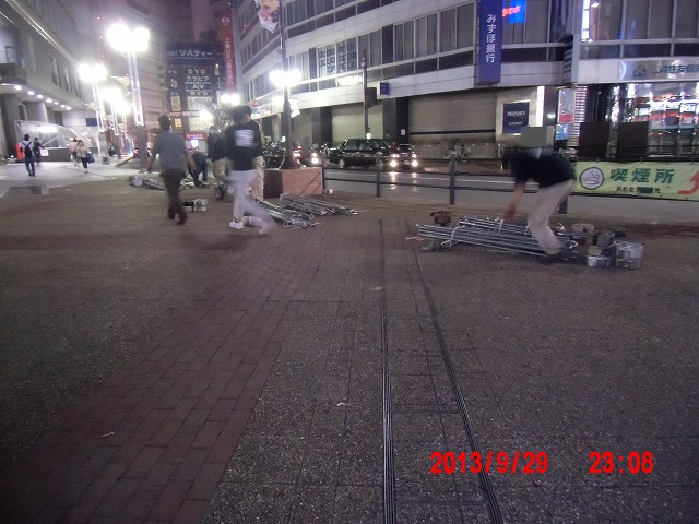 9月18日。 活動開始。真ん中の写真は昨夜不審物が並んでいた場所です。 |