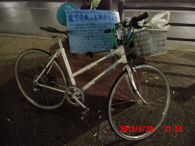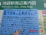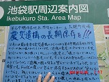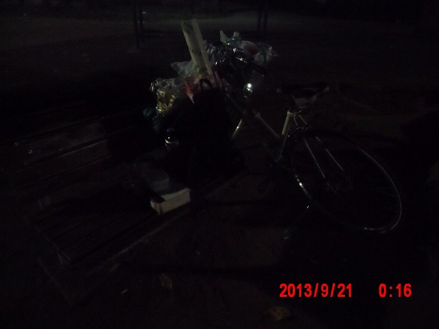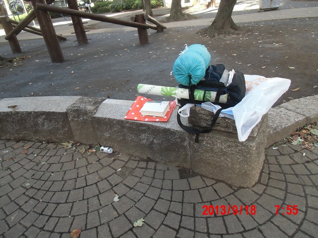台風も過ぎて、昼過ぎから冷えてきました。昨夜は東京も雨だと思って寝袋を持って来なかったので、この気温では寝袋なしの野宿の連泊は無理です。 疲れも溜まっており、街頭に立った後、素直に帰ることにします。 |