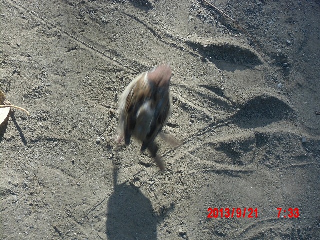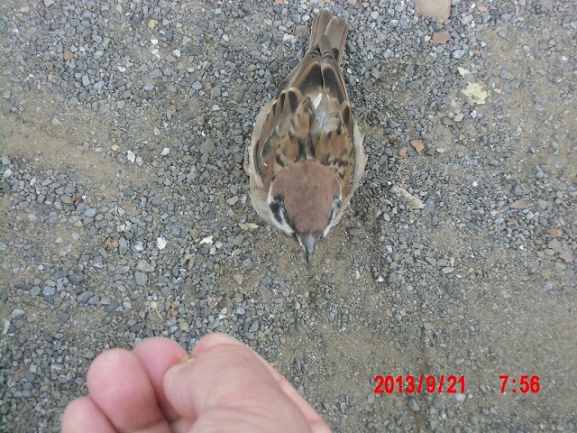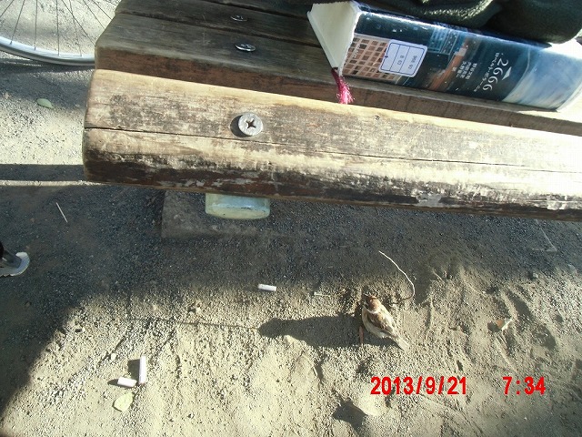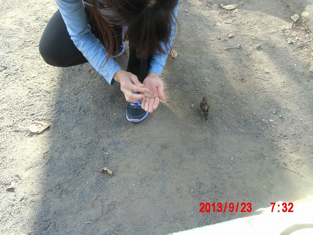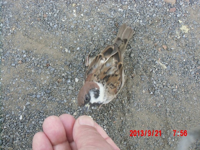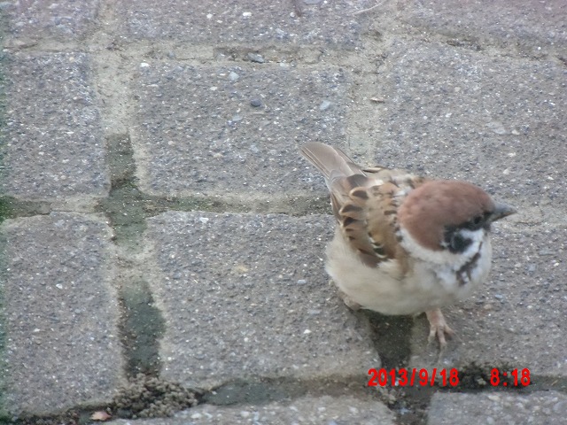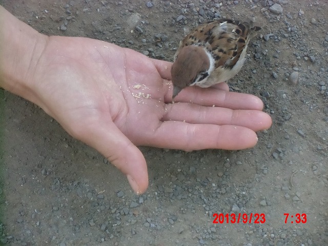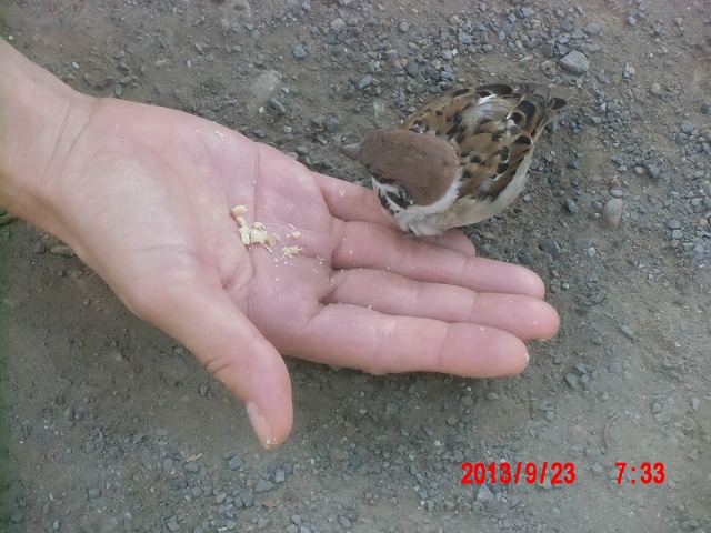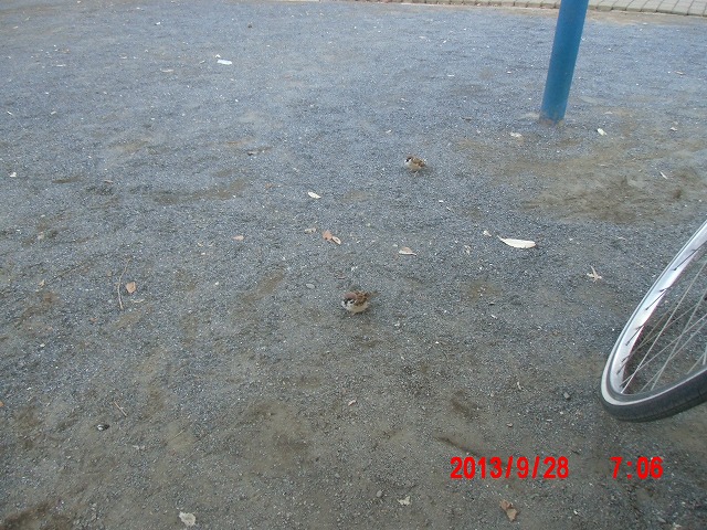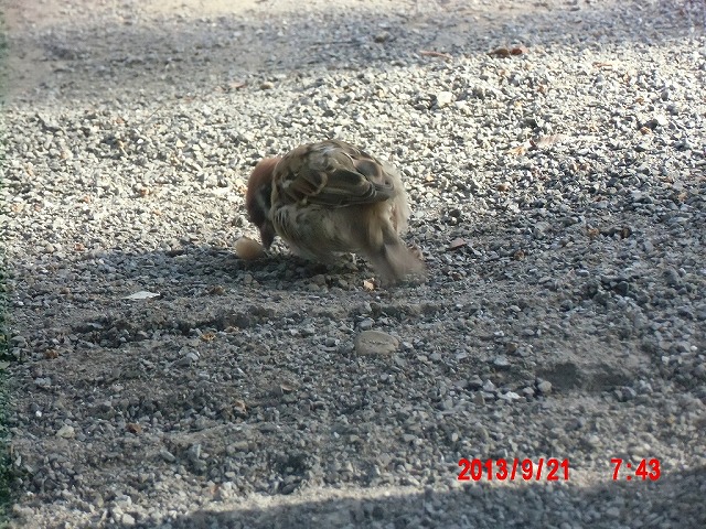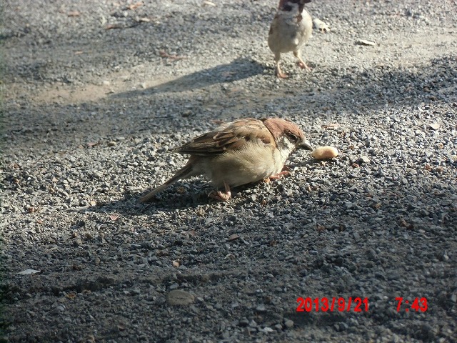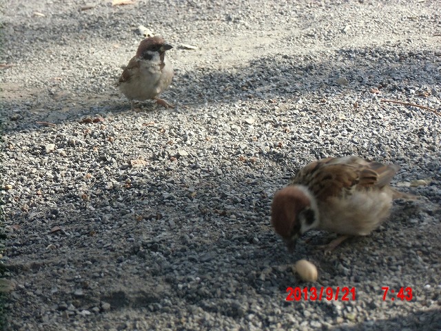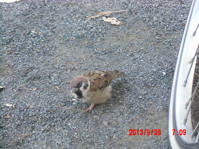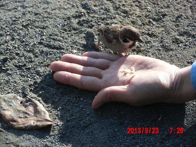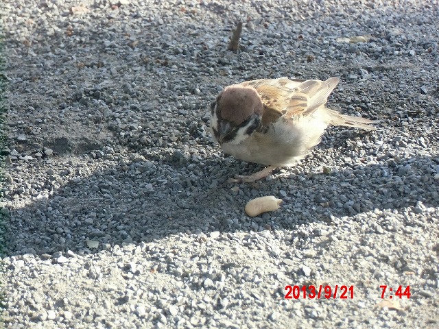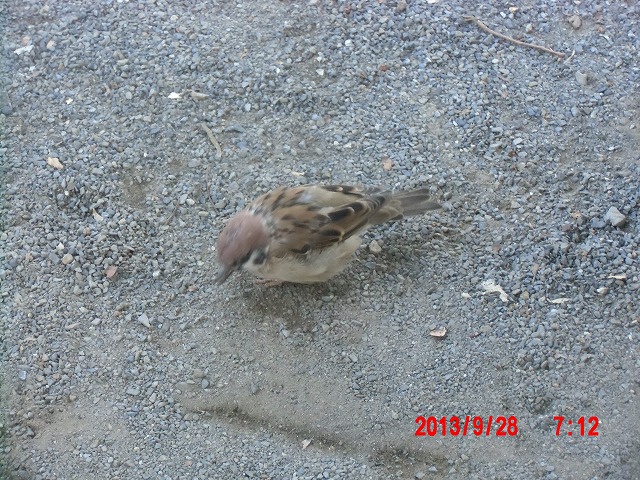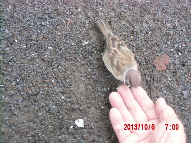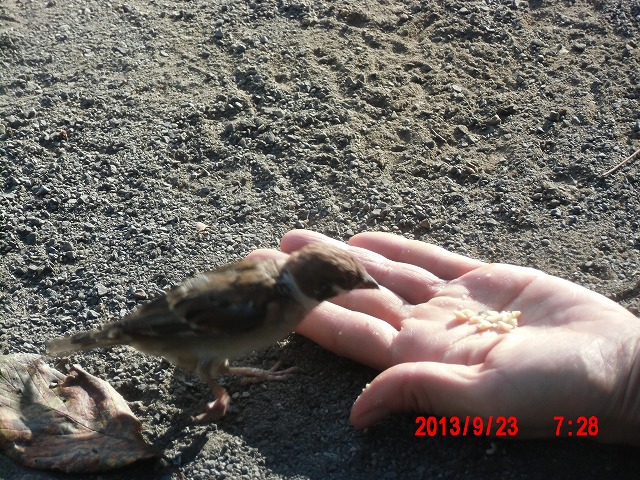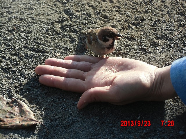 9月28日。 久しぶりにスズメと戯れています。 スペシャルゲストが帰った後でした。またすれ違い。 |