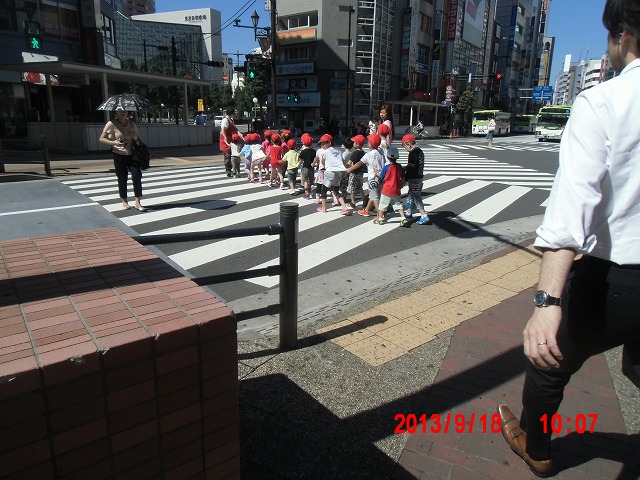 午前十時まで立ちましたが、今朝はコンタクトなし。 電車ごっこで横断歩道を横切る子たち。そのあと立教の図書館へ。まだ夏休みとあって深閑としています。 |