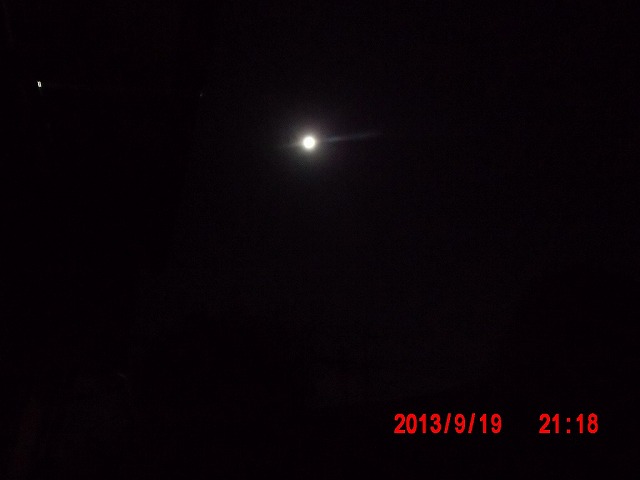 9月19日。 野宿の日の一夜は、思いもかけず、アットホームな一夜でした。これも主催者のかとうちあきさんの人柄のたまものでしょう。 自分の普段のロンリーな野宿とは比べようもありません。折しも最高の好天に恵まれ、風もなく、冷え込みもなく、雲一つない晴天で、 素晴らしい夜明けを迎えました。かとうさん、ほかの皆さん方、ありがとうございました。 さて、今夜は十五夜です。 |