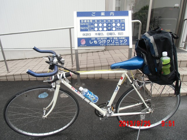 9月20日。 今日からお彼岸です。お墓参りを果たし、いろいろ用事をかたずけた後、自転車を携えて、出発です。 用事が込んでいて、出発が遅くなりました。 |