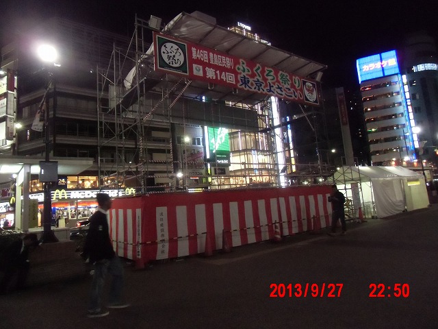 9月27日。 自宅で用事もあり、池袋に着いたのはこんな時間です。 週末の祭りの櫓が立っていました。 |
