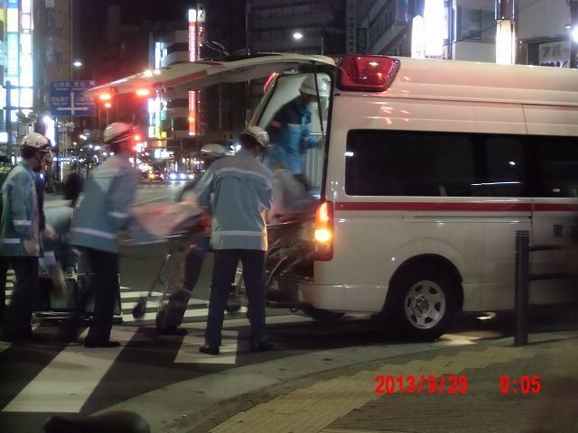 と思う間もなく、救急車が到着。救急隊員数名が担架を持って地下街に降りていき、かなり時間がたってから別の出入り口から救出して行きました。 |