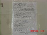 防災センターの二階の避難室の壁に次のようなメッセージが貼ってありました。 (画像、大きくなります) |