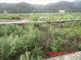 9月24日。 一晩中、小雨が降り続いていました。明け方近く、シュラフを通して滲みてくる雨の感触で目が覚めてしまいました。ずぶぬれ寸前です。 まだ早いので、雨宿りできる場所を探します。 |