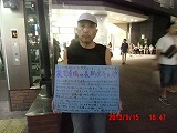 9月15日。 今日から池袋駅西口の街頭に立つことにしました。10月まで時間はない。まずは行動しよう。行動しながら積み上げて行こうと思ったのです。 活動の記録として、声をかけてくれた方にお願いして撮影していただきました。 |