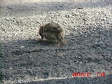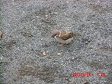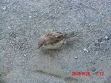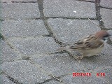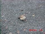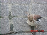 人馴れした都会のスズメは足元まで寄ってきます。 この子、右足が利かないようですが、左足一本で元気に駆けずり回っています。 |