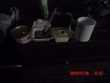 食卓の光景。 閑静です。 惜しむらくは、もう少し眠り足りていればいいのですが、このひと時の充実は貴重です。 |